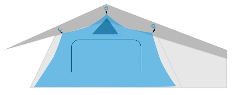Al respirar, sudar o cocinar se genera una gran cantidad de humedad en el interior de la tienda, que puede condensarse en la parte interior de la carpa exterior, especialmente en noches frías. Para contrarrestar este problema, hemos desarrollado la tienda interior CAMPWERK. Se fija fácilmente a los postes existentes de la tienda de techo, convirtiéndola en una tienda de doble pared que ofrece una mejor protección contra la condensación.La tienda interior está fabricada de algodón puro y, gracias a las aberturas con cremallera en cada lado de entrada y en ambos lados de las ventanas, proporciona una ventilación óptima, lo cual es una gran ventaja especialmente en días calurosos.