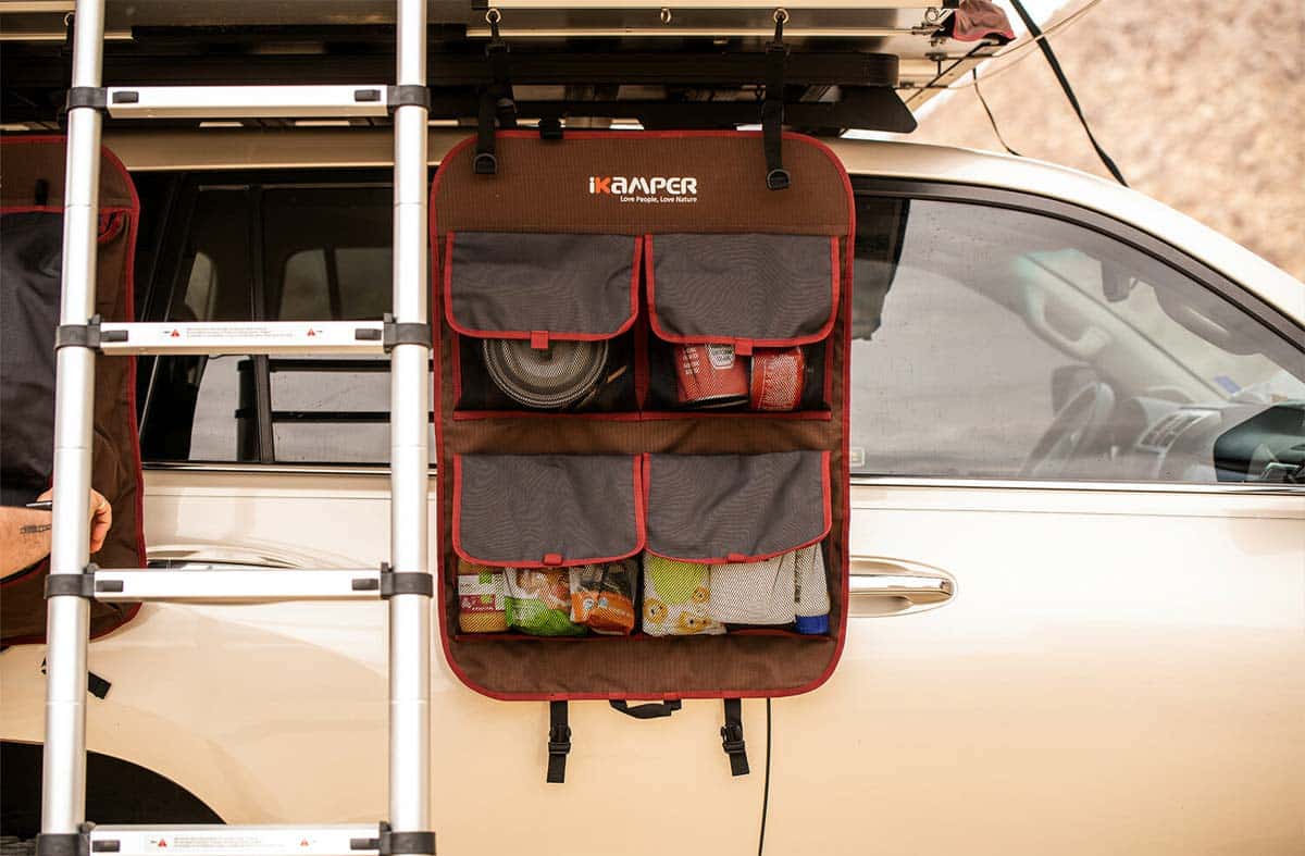 Estos son definitivamente los más adecuados para un viaje corto de camping en la tienda de campaña o tienda de techo. Puedes colgarlo fácilmente donde haya espacio y puedes guardar suficientes utensilios para disfrutar de tus vacaciones de forma estructurada y sin preocupaciones. Esta variante ahorra mucho espacio y es práctica al mismo tiempo, y es especialmente adecuada para una escapada de fin de semana corta en la que, por ejemplo, no tienes demasiado espacio disponible en tu tienda de campaña.