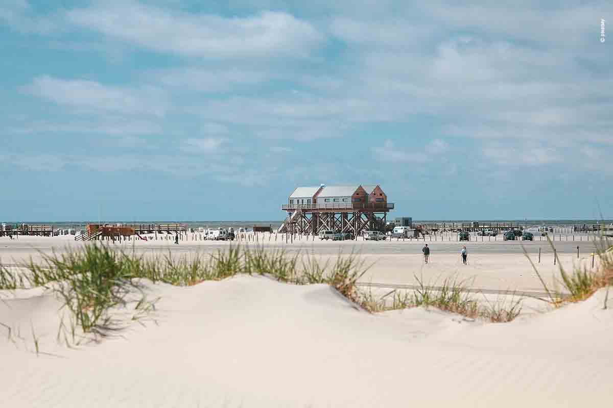 Si se le pregunta a un verdadero frisón del norte, qué caracteriza a Sankt Peter Ording, entonces la respuesta será muy probablemente; una playa infinitamente larga con impresionantes paisajes de dunas, las construcciones sobre pilotes únicas y numerosos kitesurfistas y windsurfistas. A quien le guste eso, está en el lugar correcto.
