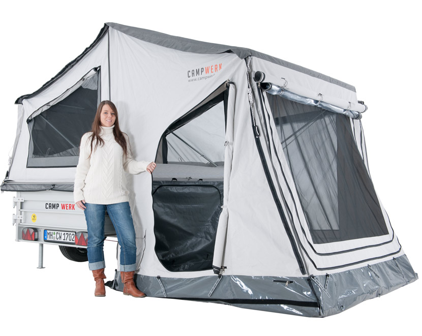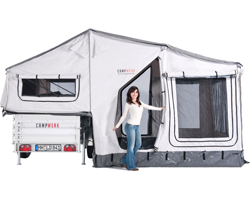Los remolques de tienda de campaña son los auténticos milagros espaciales entre las caravanas. Empacados ocupan poco espacio – desplegados se convierten en minutos en enormes tiendas de campaña con una cama verdaderamente confortable. La plataforma de la tienda se puede separar después de las vacaciones y ya se tiene, además del remolque de camping, un remolque utilitario para el hogar. Por cierto, ¡no se requiere licencia de remolque! Ya sea un automóvil pequeño, un vehículo eléctrico o un todoterreno: los remolques de tienda de campaña de CAMPWERK son los compañeros de viaje perfectos.