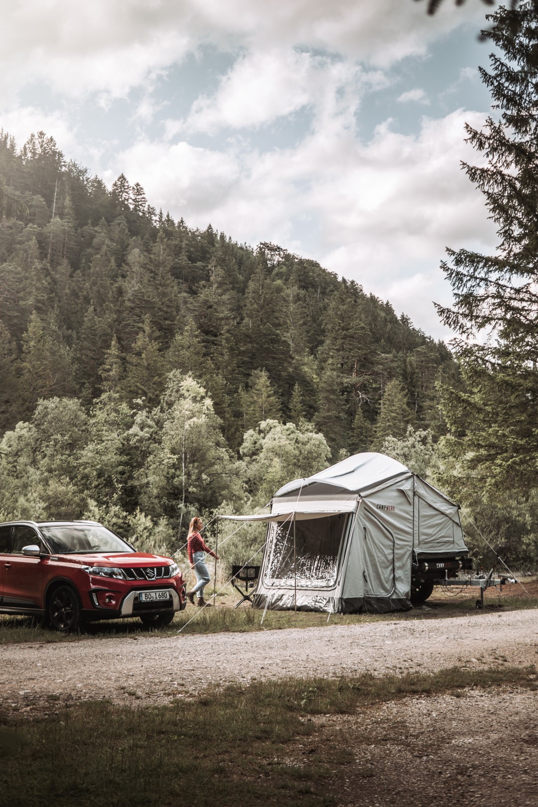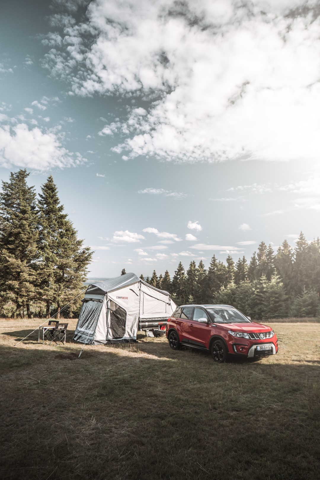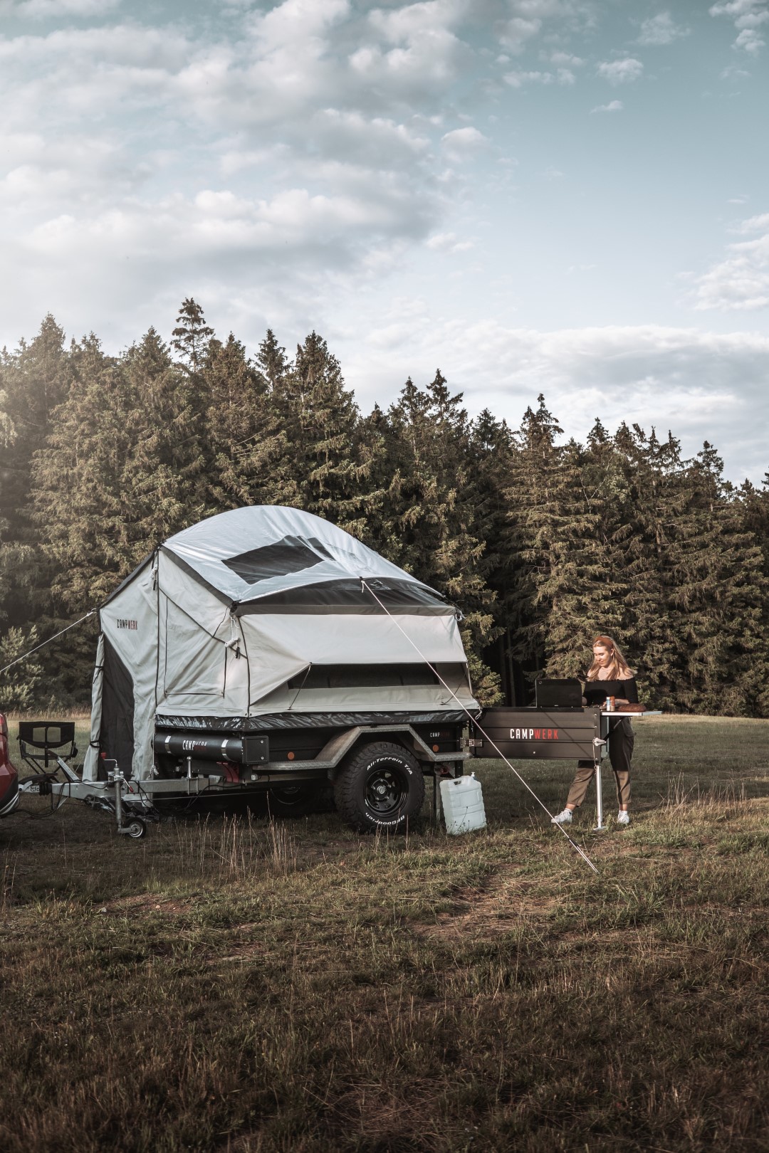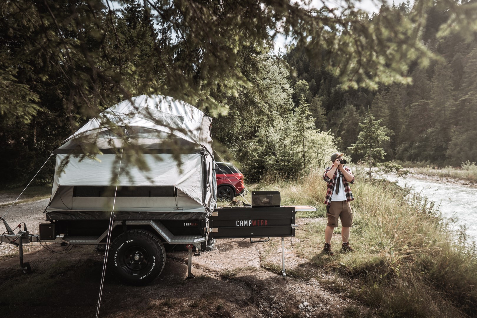 Los remolques de tienda de campaña son los auténticos milagros espaciales entre las caravanas. Empacados ocupan poco espacio – desplegados se convierten en minutos en enormes tiendas de campaña con una cama verdaderamente confortable. La plataforma de la tienda se puede separar después de las vacaciones y ya se tiene, además del remolque de camping, un remolque utilitario para el hogar. Por cierto, ¡no se requiere licencia de remolque! Ya sea un automóvil pequeño, un vehículo eléctrico o un todoterreno: los remolques de tienda de campaña de CAMPWERK son los compañeros de viaje perfectos.