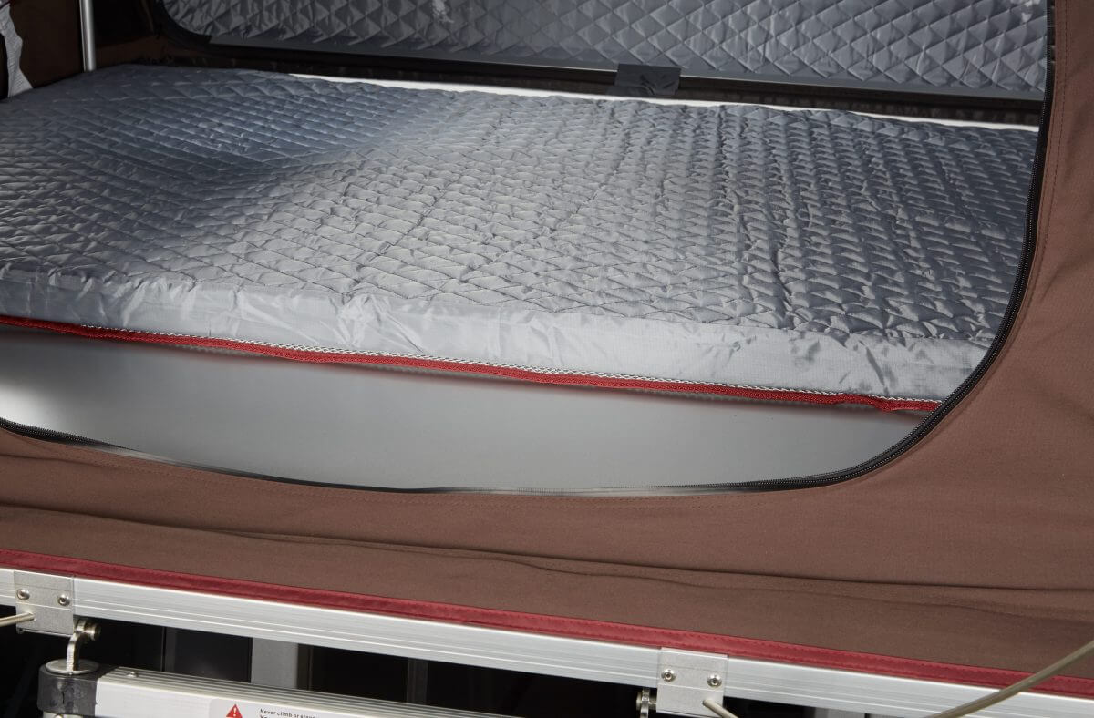 El Skycamp 2.0 ya está equipado con un colchón premium muy cómodo. El 3.0, debido a la construcción optimizada de la carcasa rígida, ofrece más espacio en el interior, lo que permite un colchón un