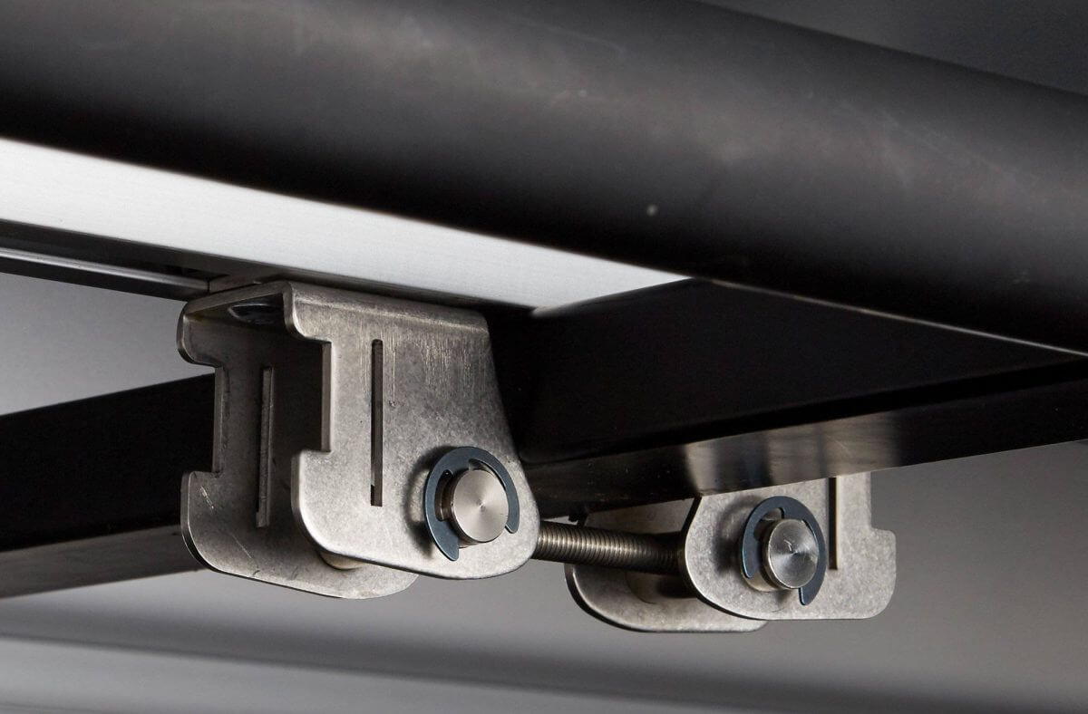 Los soportes de montaje 3.0 permiten la instalación en una gama aún más amplia de barras transversales. El atornillado ahora se encuentra dentro del perfil de aluminio y se puede operar desde el lado del techo con la llave larga proporcionada. Otra ventaja es que en el 3.0, al desmontar la tienda de techo, ya no es necesario aflojar completamente el tornillo (como en el 2.0). Es suficiente aflojarlo ligeramente para levantar la tienda de techo.