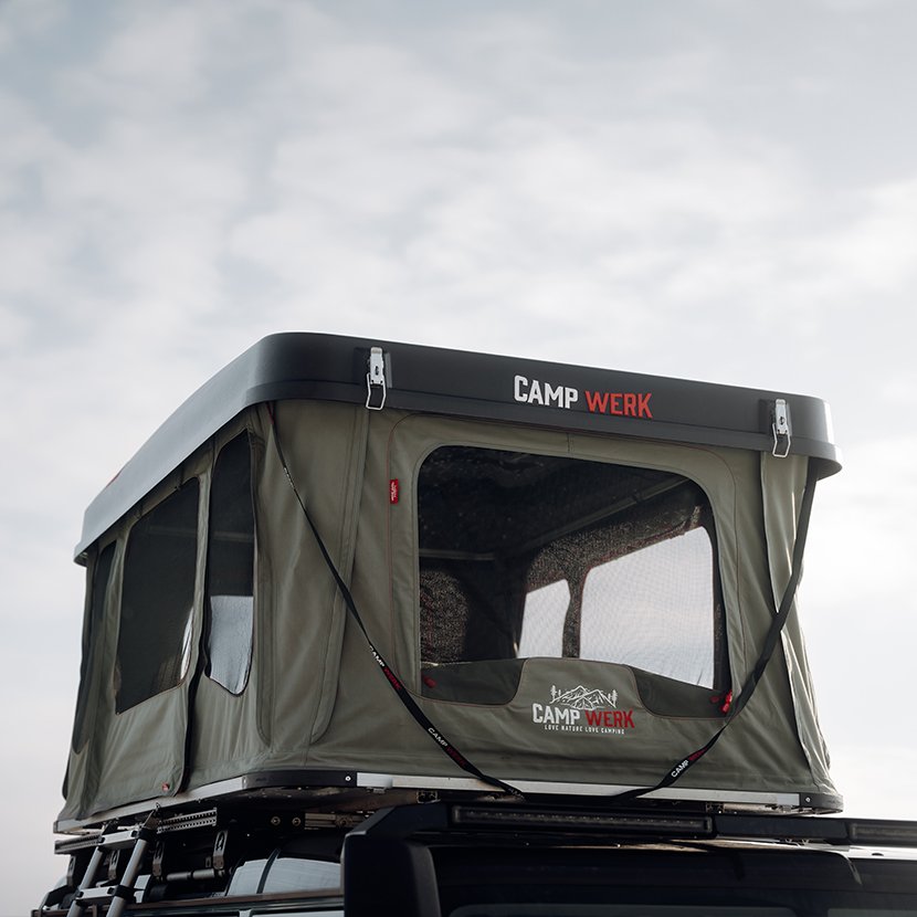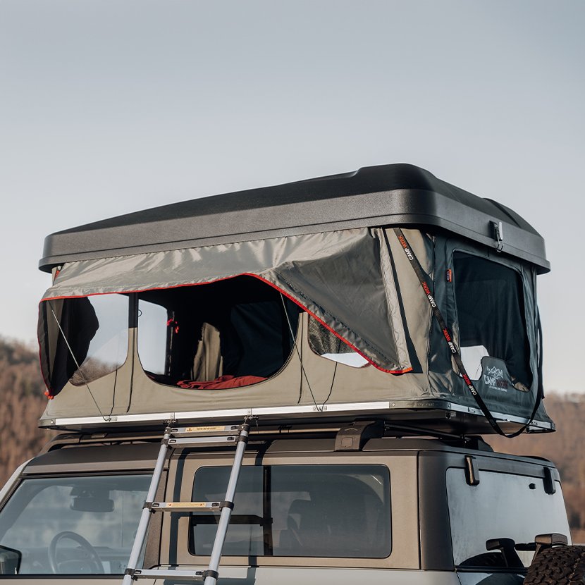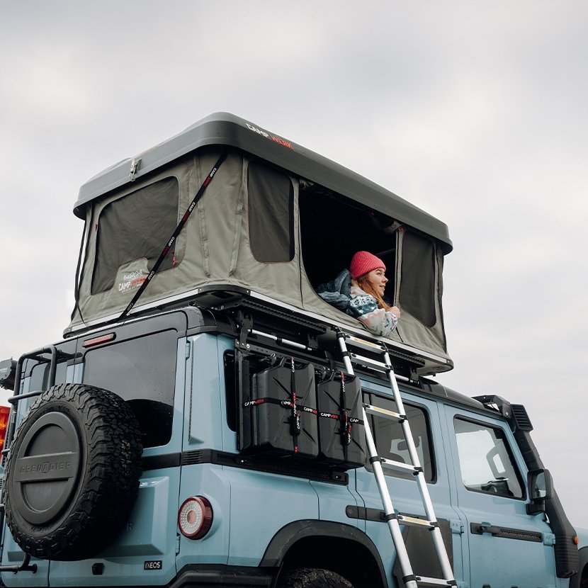 Una tienda de techo de carcasa rígida le proporciona un techo sólido y protector sobre su cabeza y se abre en una superficie que no es más grande que el techo de su automóvil. Así, disfruta del máximo confort en un espacio mínimo.