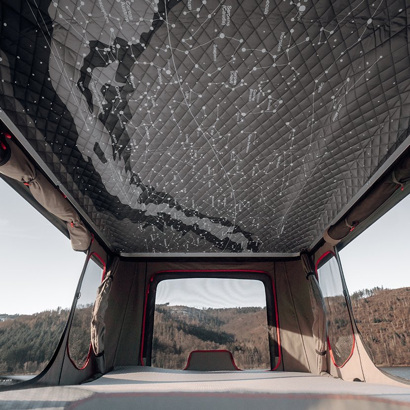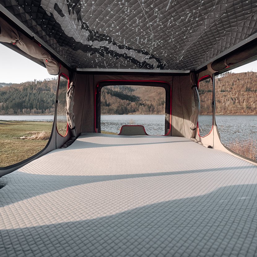La carcasa rígida de Good Vibes cuenta con una zona de aire especial entre la forma exterior e interior, que aísla el interior de la tienda de techo contra el ruido y el frío.