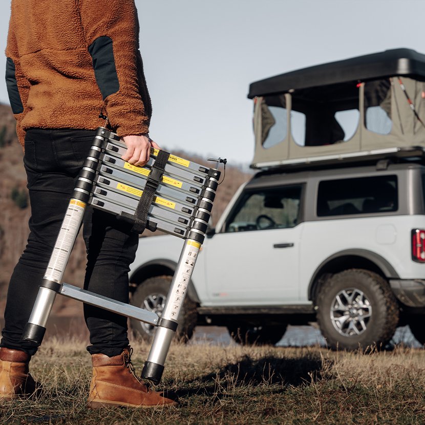 La tienda de techo pesa 68 kg + 6 kg de escalera. La escalera es desmontable y puede viajar en su equipaje si es necesario.